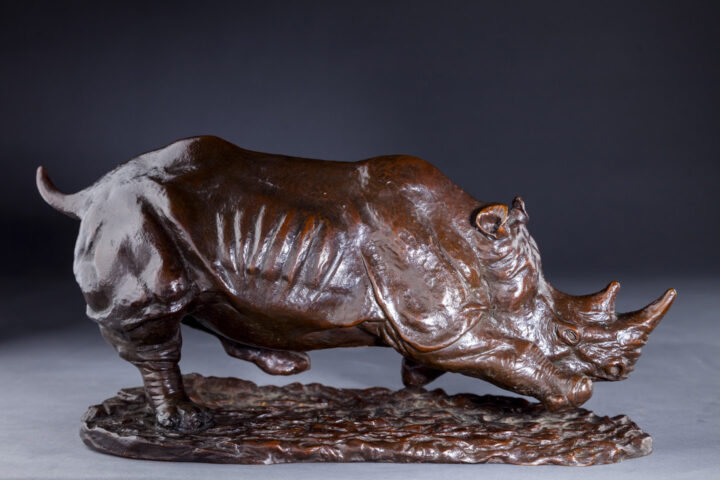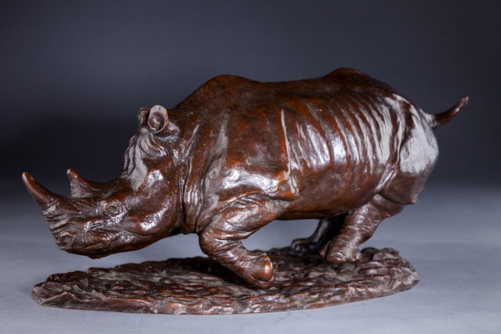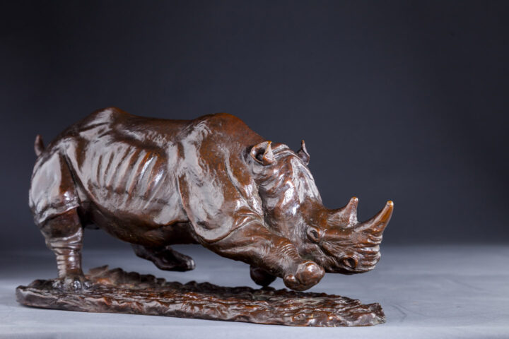Members of the rhinoceros family are some of the largest remaining megafauna, with all species able to reach or exceed one tonne in weight. They have a herbivorous diet, one or two horns, and a thick (1.5–5 cm) protective skin formed from layers of collagen positioned in a lattice structure.